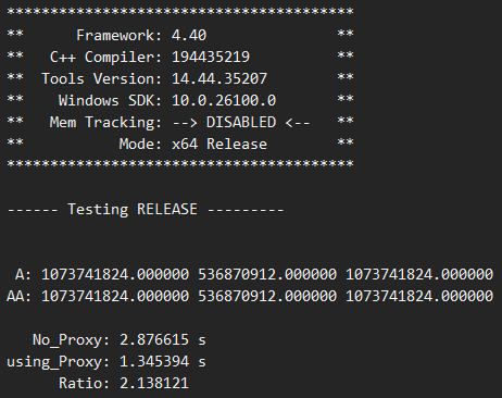 It should be noted that in Debug mode, the inline proxy version will still call the constructors and inline operators for each subsequent proxy, which reduces the benefits of this structuring.